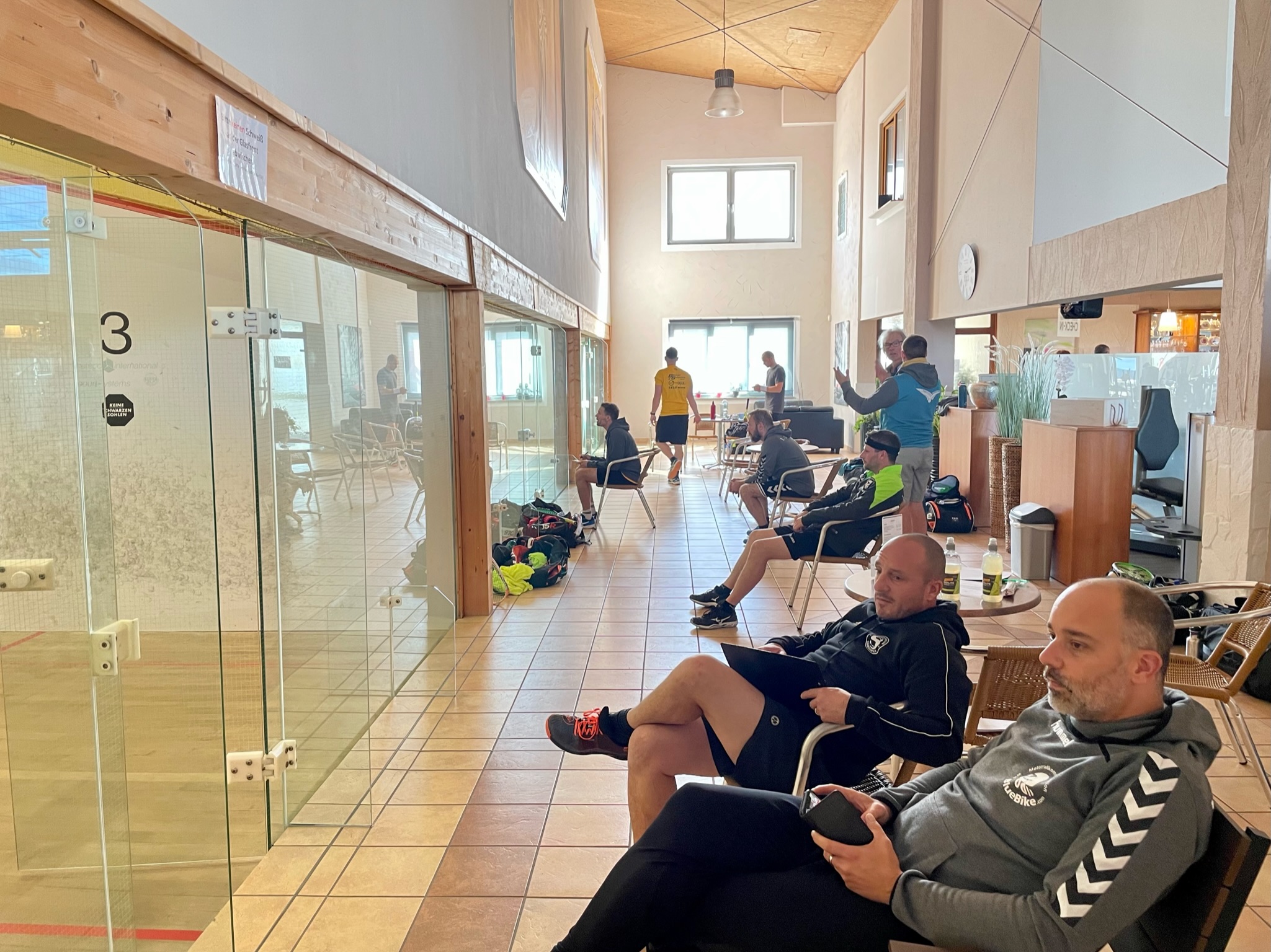 Auch die 2. Mannschaft hatte in der zweigeteilten Oberliga, konkret in Gruppe B, ihren ersten Auftritt. Dieser war etwas unglücklich aus zwei Gründen: einerseits mussten wir den Weg nach Germersheim nur mit 3 Spielern antreten, weil Lea kurzfristig krankheitsbedingt ausfiel, andererseits hatten wir dann auch nur ein Spiel zu bestreiten, was in einer Rekordzeit von noch nicht einmal 1 Stunde beendet war. Die Fahrzeit war damit dreimal so hoch wie die Spielzeit. Die Mainzer hatten nämlich abgesagt. So kurz die Spielzeit, so kurz auch der Bericht: Markus spielte auf Position 3 gegen Henning Thiel und hatte gegen den technisch und spielerisch starken Gegner keine Chance, sondern nur Kampf und Einsatz entgegenzuhalten, was ihm 7 Punkte in 3 Sätzen einbrachte. Bei Marc auf Position 2 lief es gegen André Guldi, den Dauer-Squasher aus der Südpfalz, zwar etwas besser. Aber auch Marc hatte nur im 3. Satz Chancen, musste die beiden ersten deutlich abgeben. Und Christian, unser neuer Präsident (herzlichen Glückwunsch dazu) zahlte gegen Jürgen Schmidt auf der Spitzenposition Lehrgeld. Zwar hielt er im 1. und 3. Satz mit, im 2. unterliefen ihm doch mehr Fehler als in den anderen beiden, sodass auch hier nichts Zählbares heraussprang. Wie sagt das Sprichwort: außer Spesen nichts gewesen und die Spesen waren aufgrund der Fahrstrecke doch recht hoch. Nichtsdestotrotz: weiter geht es, kräftig durchschütteln, Krone richten und die anderen Teams in den kommenden Spielen raushauen.
